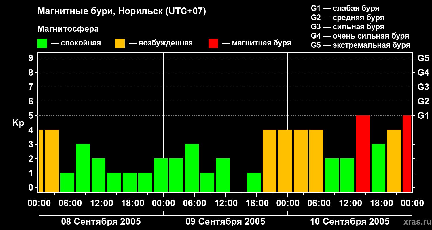 Магнитные бури в Норильске — 10 сентября 2005 года