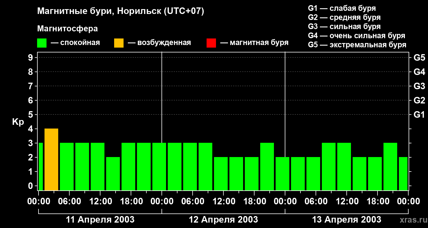 Магнитные бури в Норильске — 13 апреля 2003 года