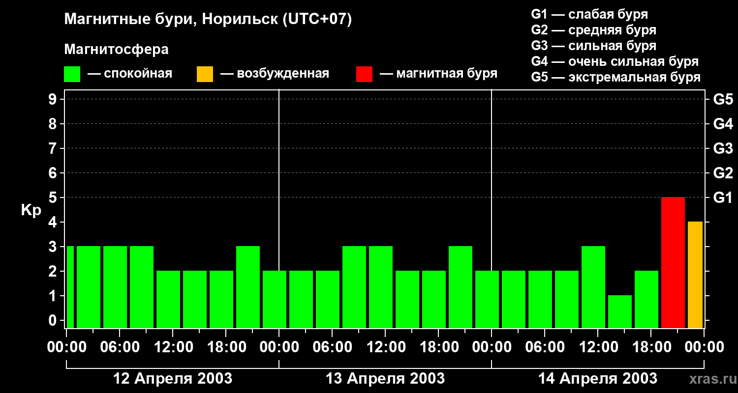 Магнитные бури в Норильске — 14 апреля 2003 года
