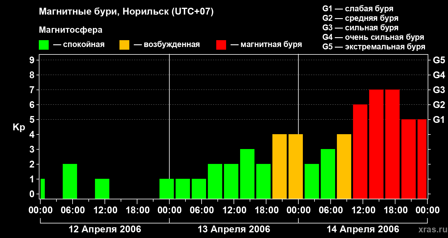 Магнитные бури в Норильске — 14 апреля 2006 года