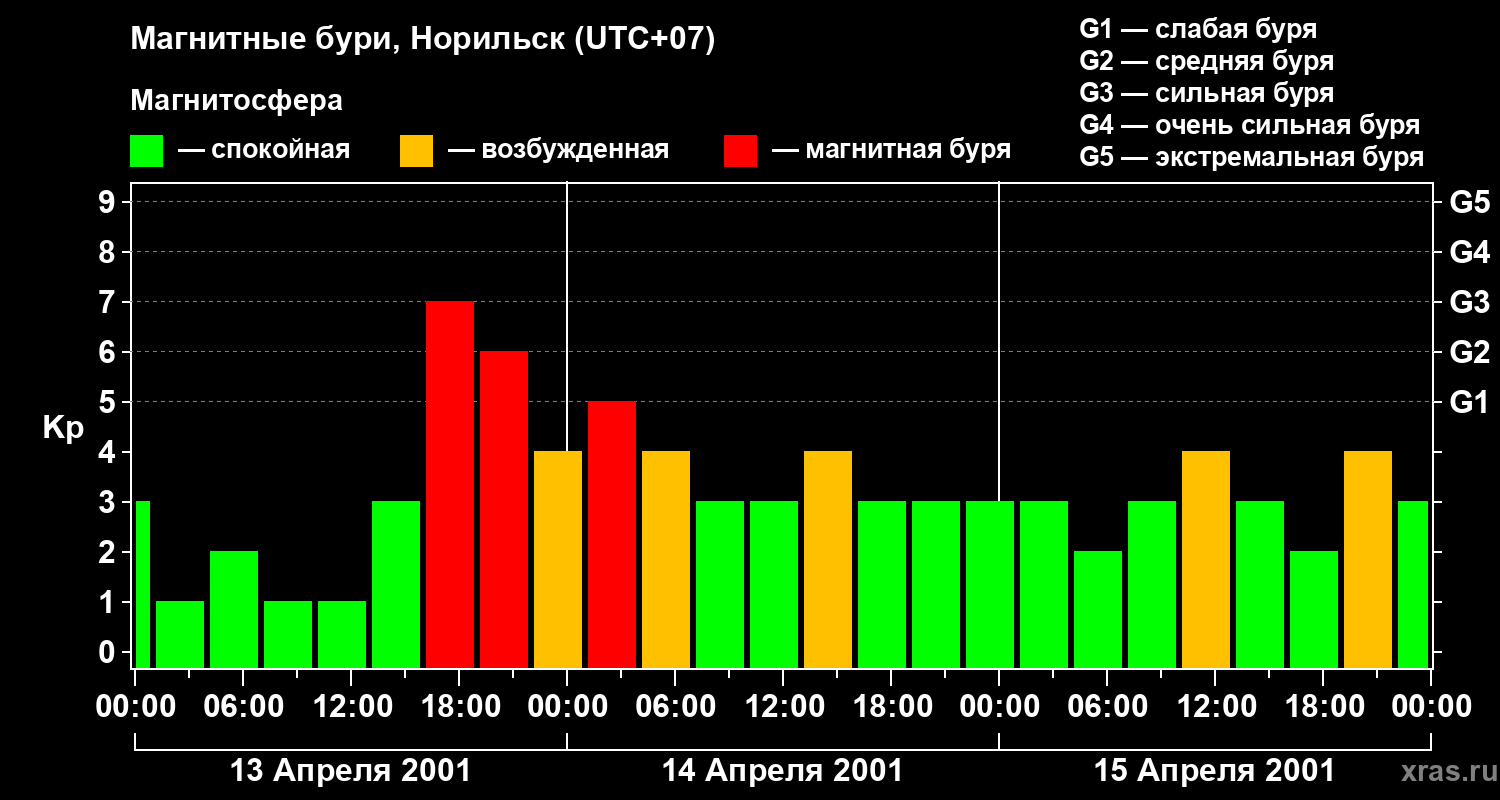 Магнитные бури в Норильске — 15 апреля 2001 года