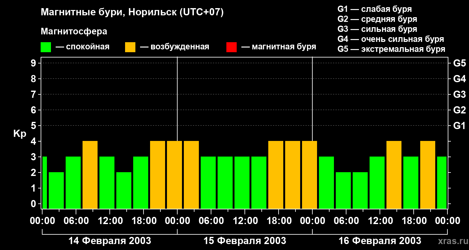 Магнитные бури в Норильске — 16 февраля 2003 года