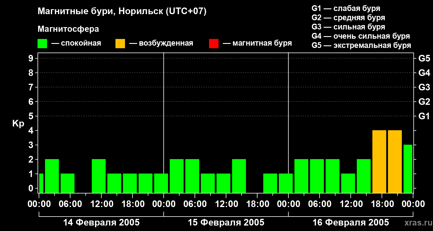 Магнитные бури в Норильске — 16 февраля 2005 года