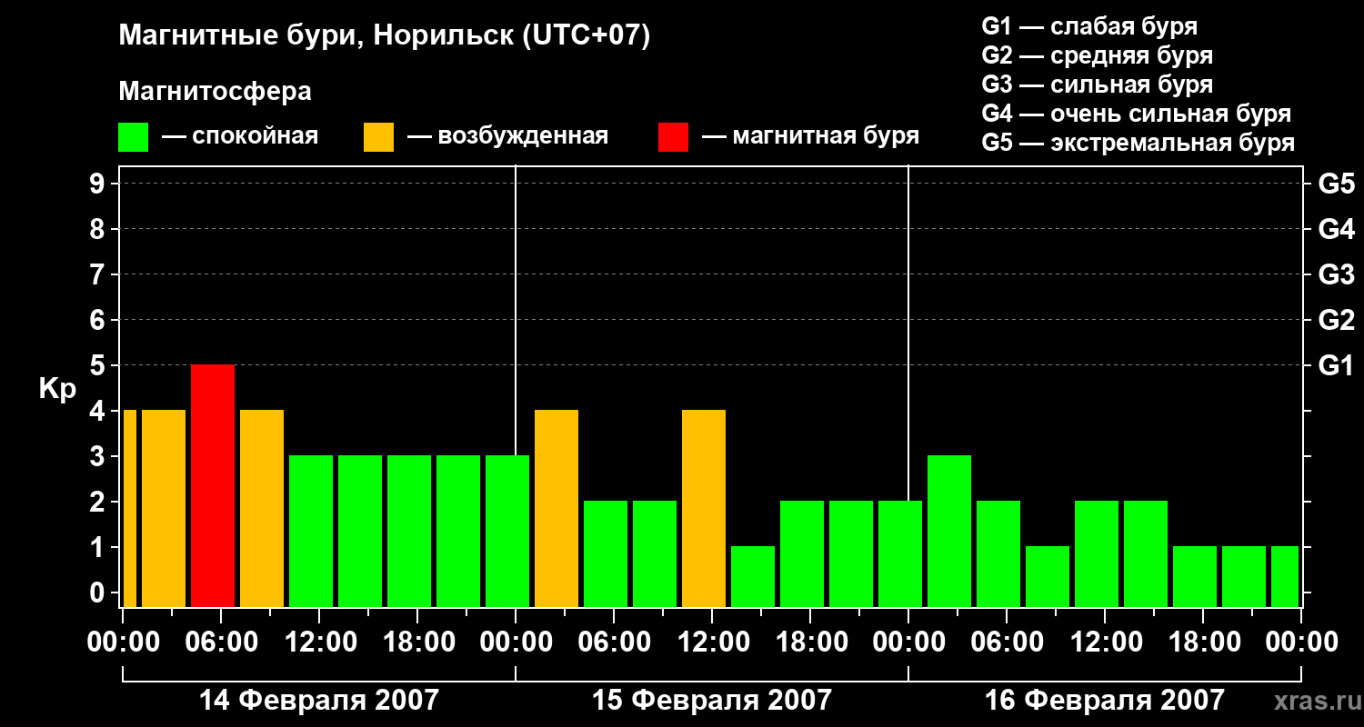 Магнитные бури в Норильске — 16 февраля 2007 года