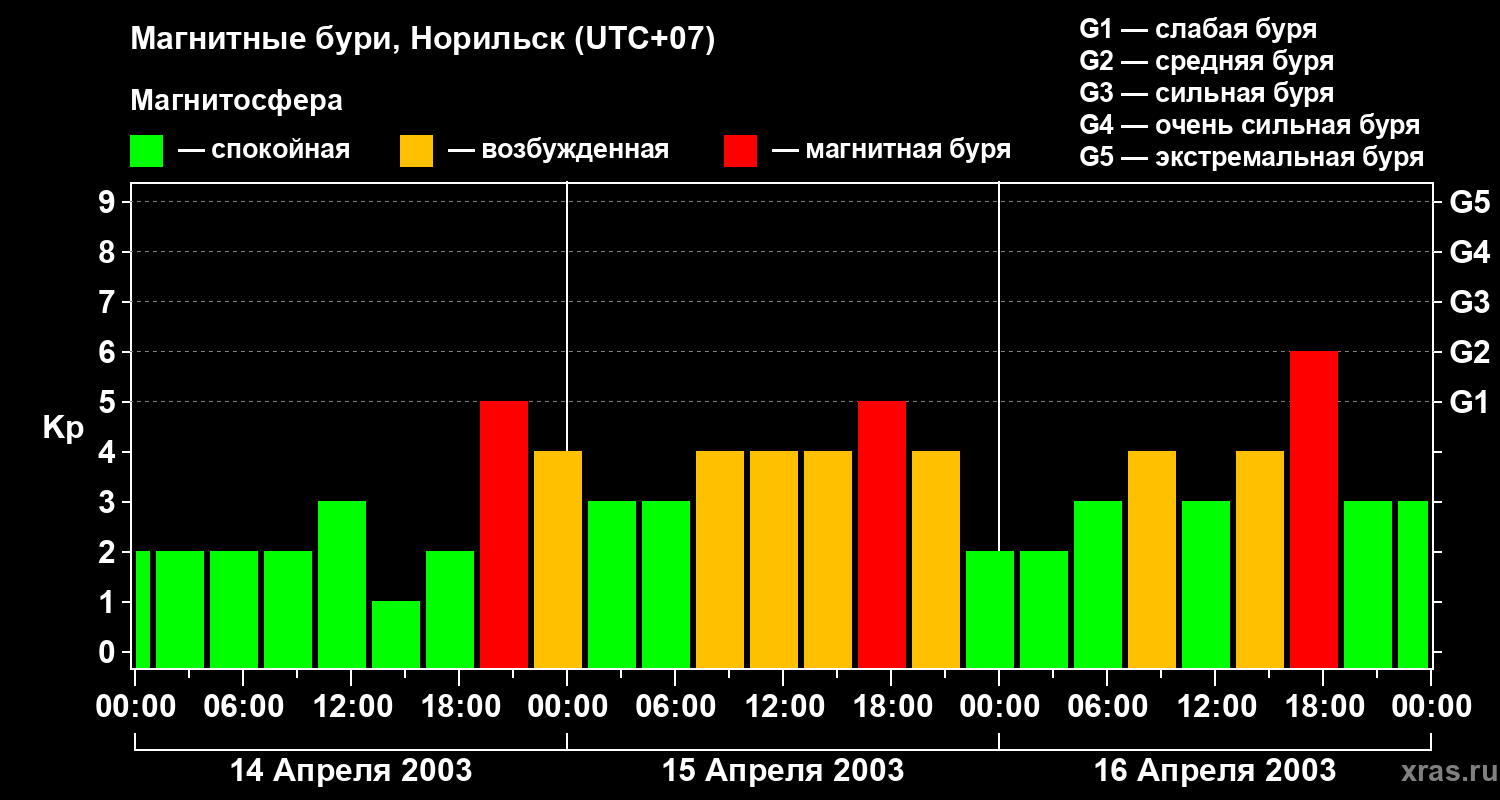 Магнитные бури в Норильске — 16 апреля 2003 года