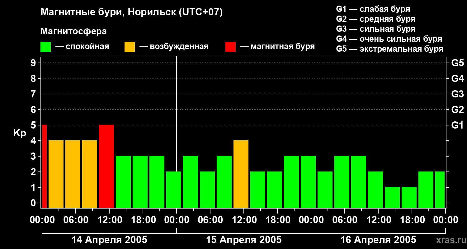 Магнитные бури в Норильске — 16 апреля 2005 года