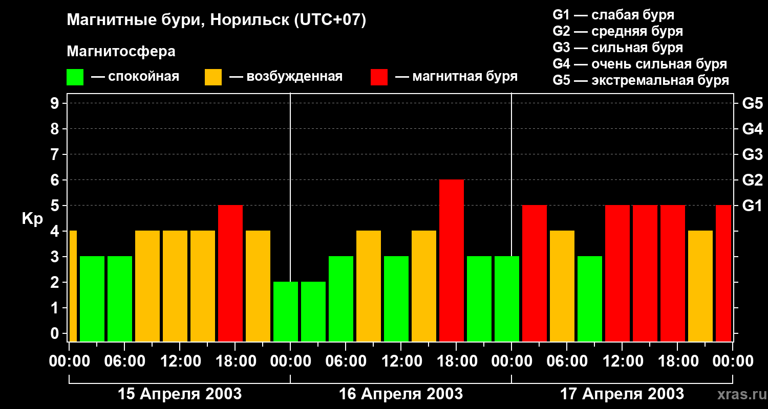 Магнитные бури в Норильске — 17 апреля 2003 года