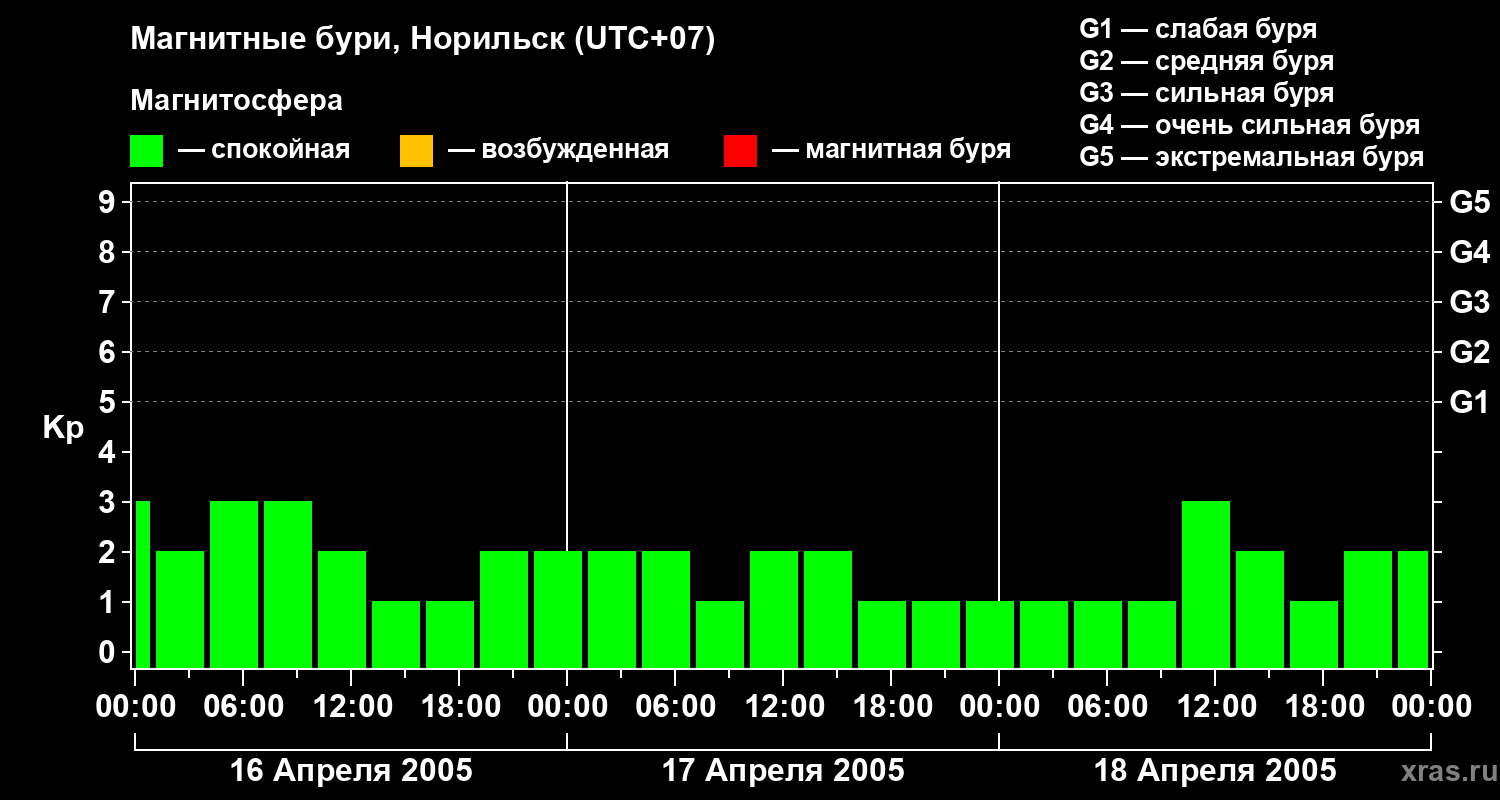 Магнитные бури в Норильске — 18 апреля 2005 года