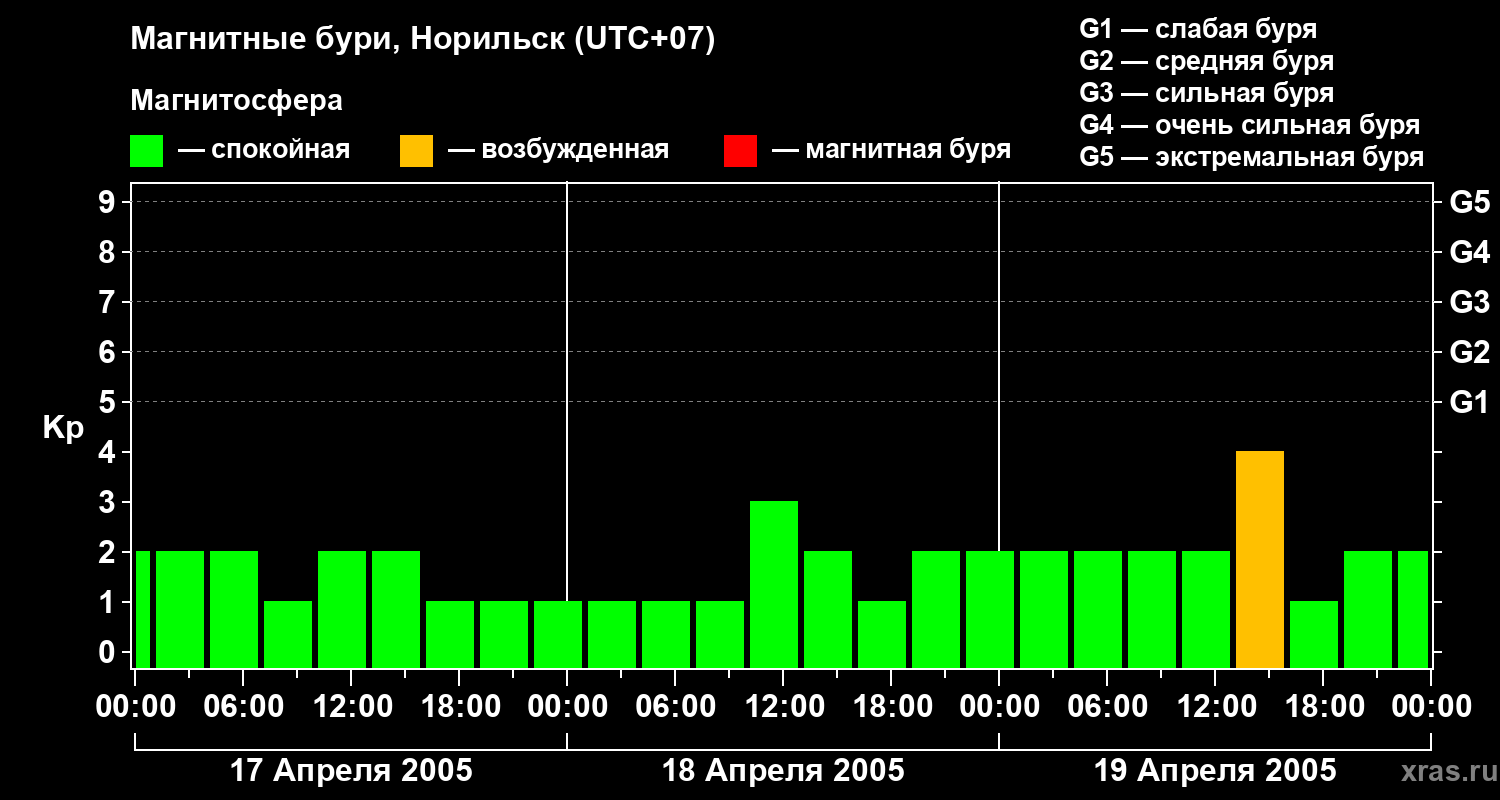 Магнитные бури в Норильске — 19 апреля 2005 года