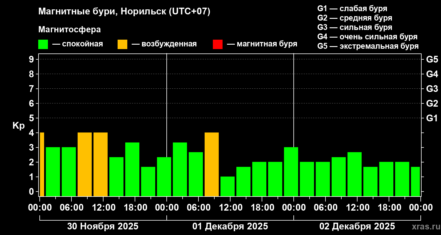 Магнитные бури в Норильске 2 декабря 2025 года