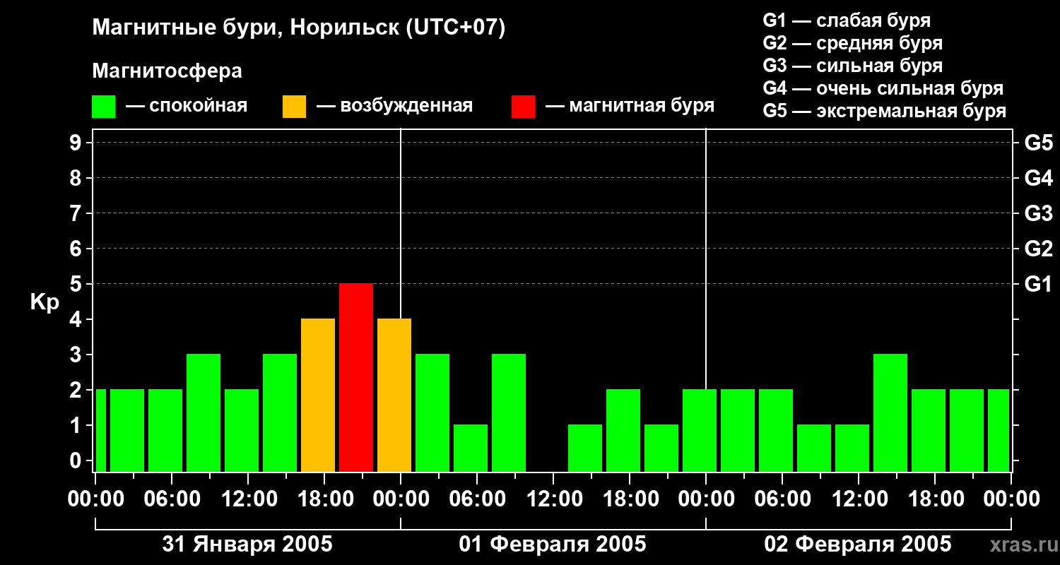 Магнитные бури в Норильске — 2 февраля 2005 года
