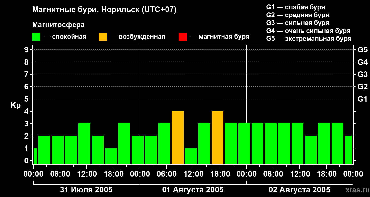 Магнитные бури в Норильске — 2 августа 2005 года