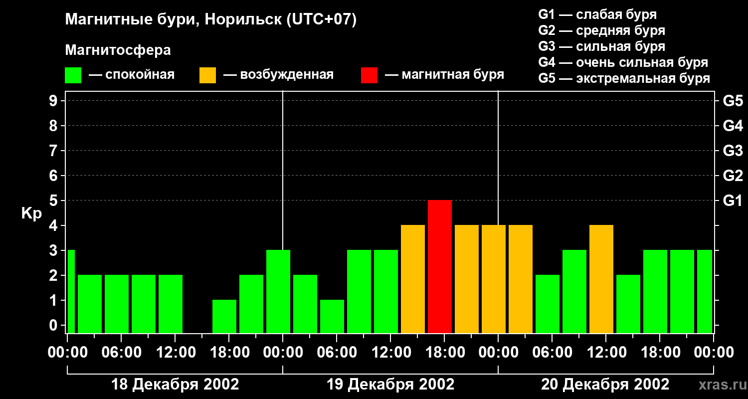 Магнитные бури в Норильске — 20 декабря 2002 года