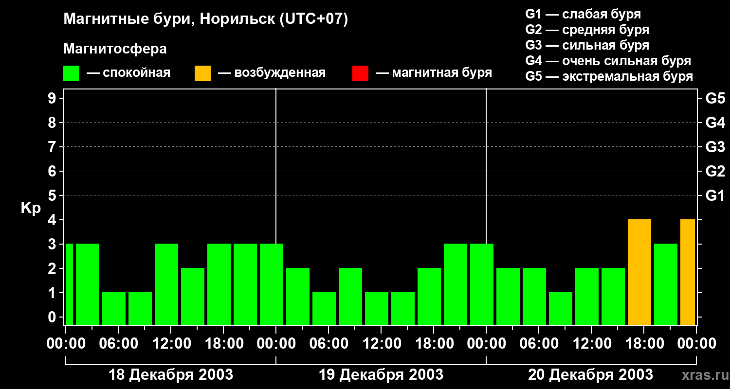Магнитные бури в Норильске — 20 декабря 2003 года