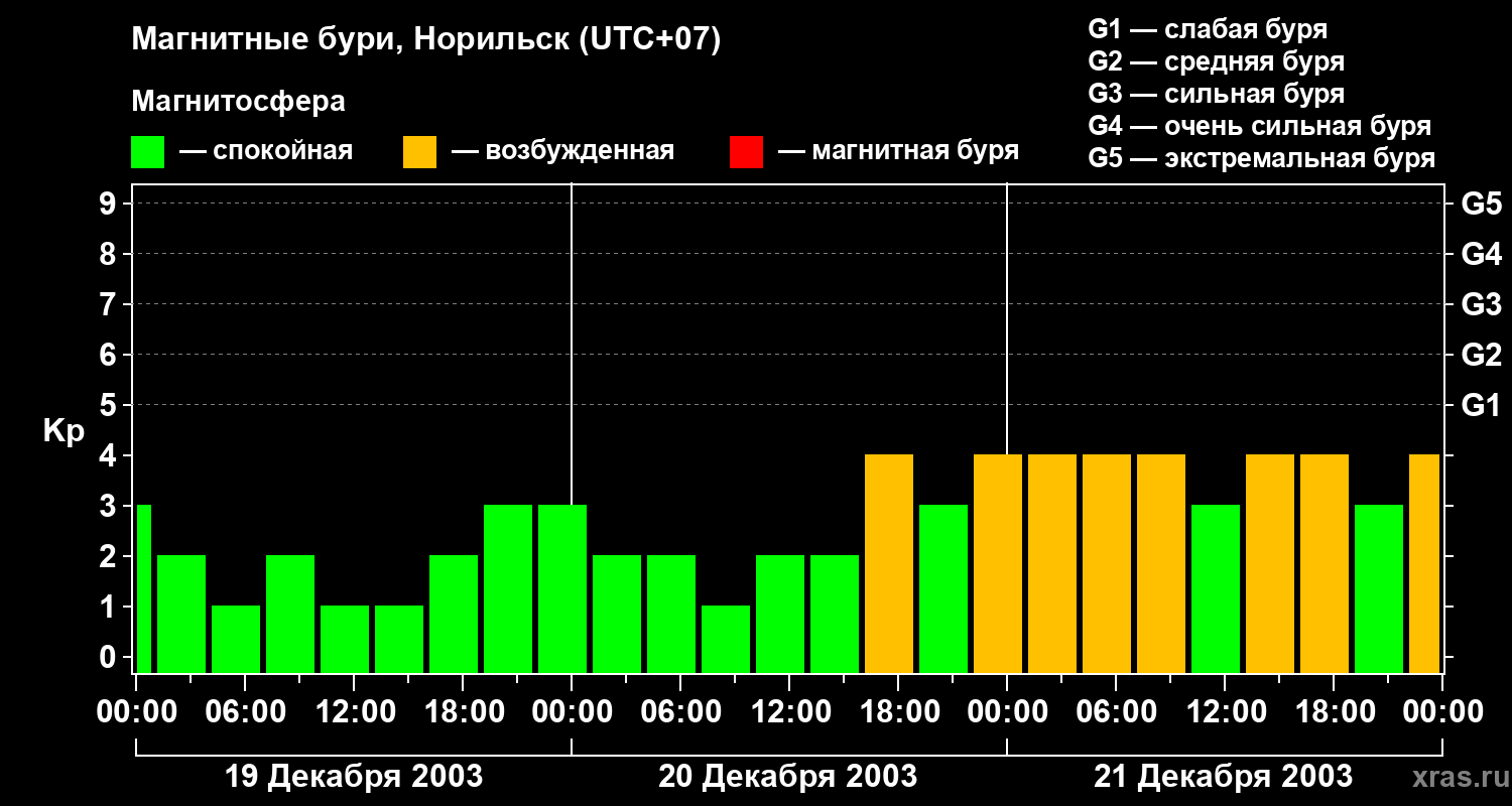 Магнитные бури в Норильске — 21 декабря 2003 года