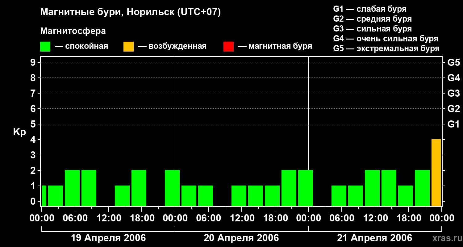 Магнитные бури в Норильске — 21 апреля 2006 года
