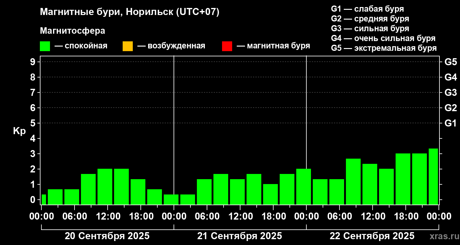 Магнитные бури в Норильске — 22 сентября 2025 года