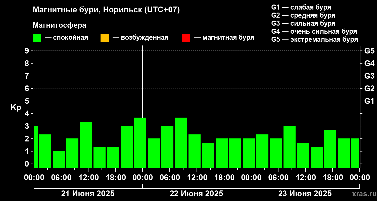 Магнитные бури в Норильске 23 июня 2025 года