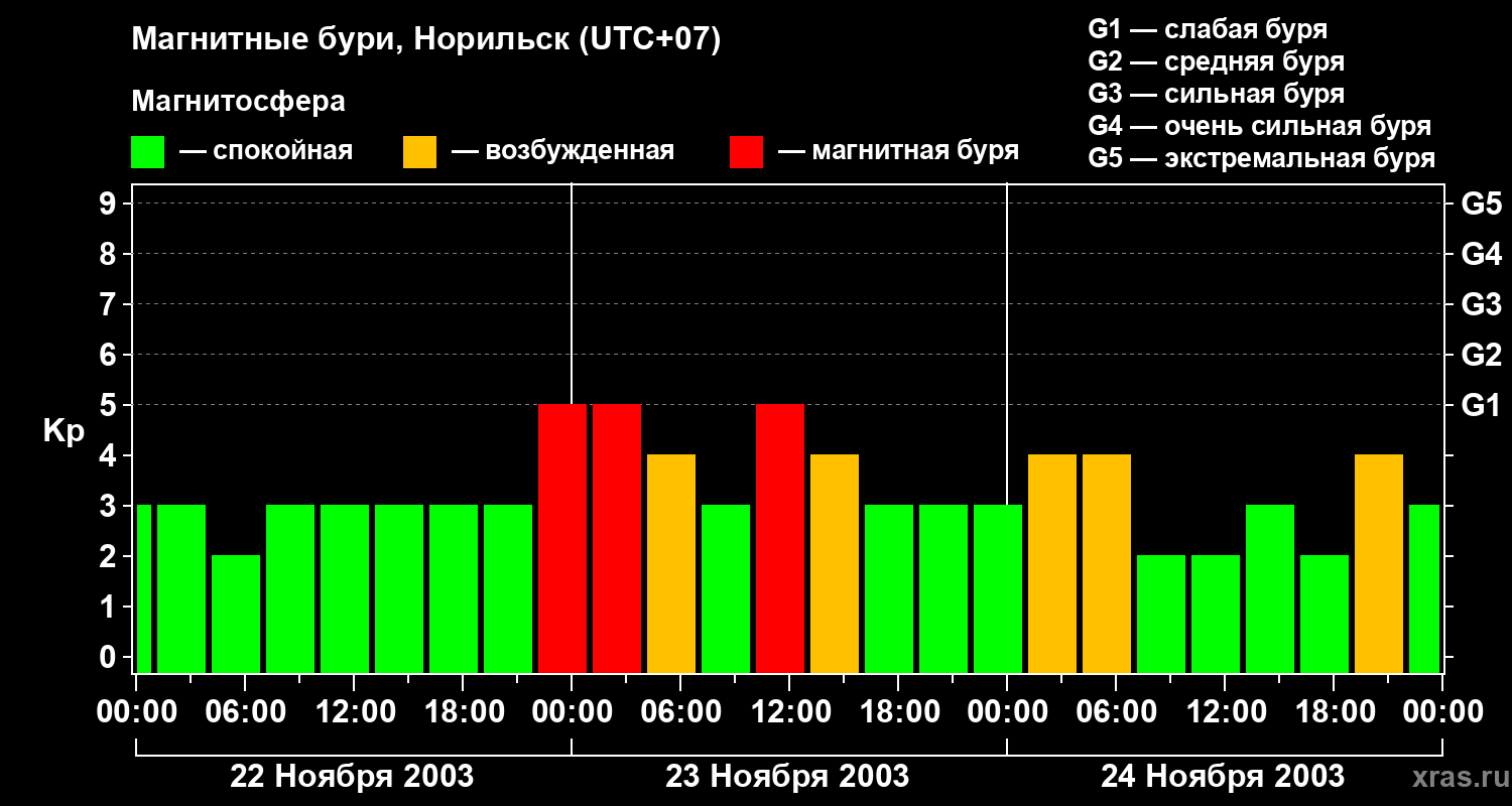 Магнитные бури в Норильске — 24 ноября 2003 года