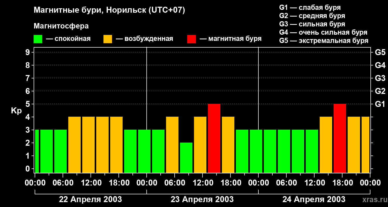 Магнитные бури в Норильске — 24 апреля 2003 года