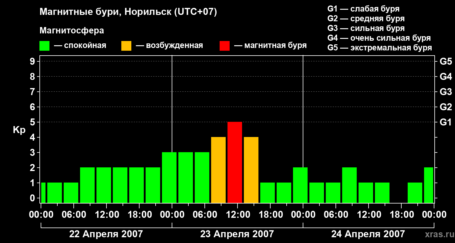 Магнитные бури в Норильске — 24 апреля 2007 года
