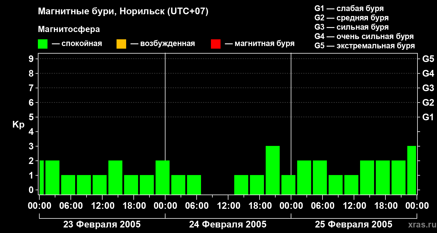 Магнитные бури в Норильске — 25 февраля 2005 года