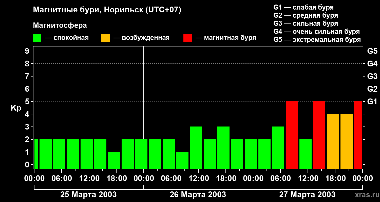 Магнитные бури в Норильске — 27 марта 2003 года