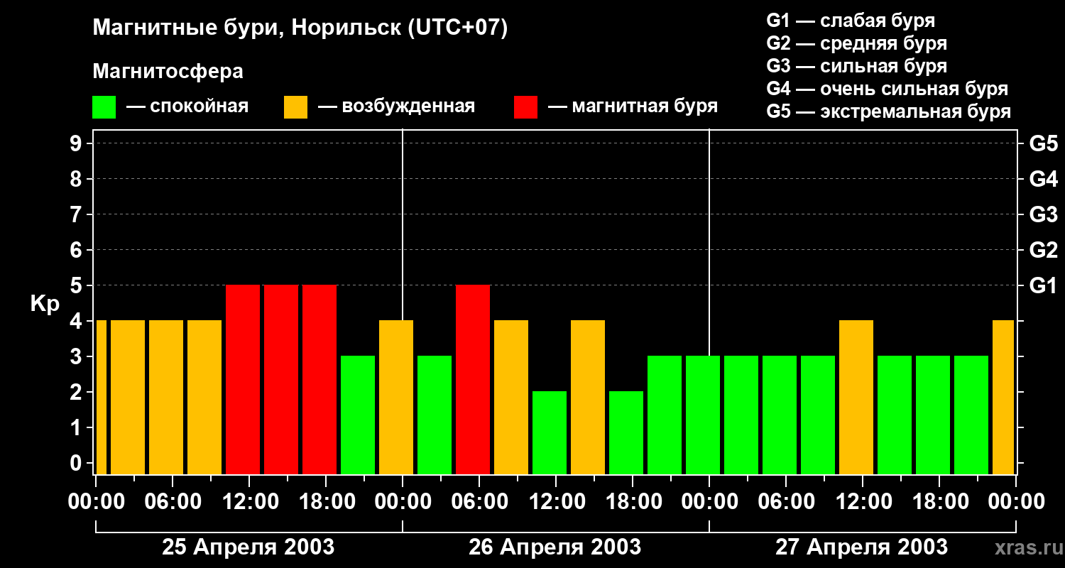 Магнитные бури в Норильске — 27 апреля 2003 года