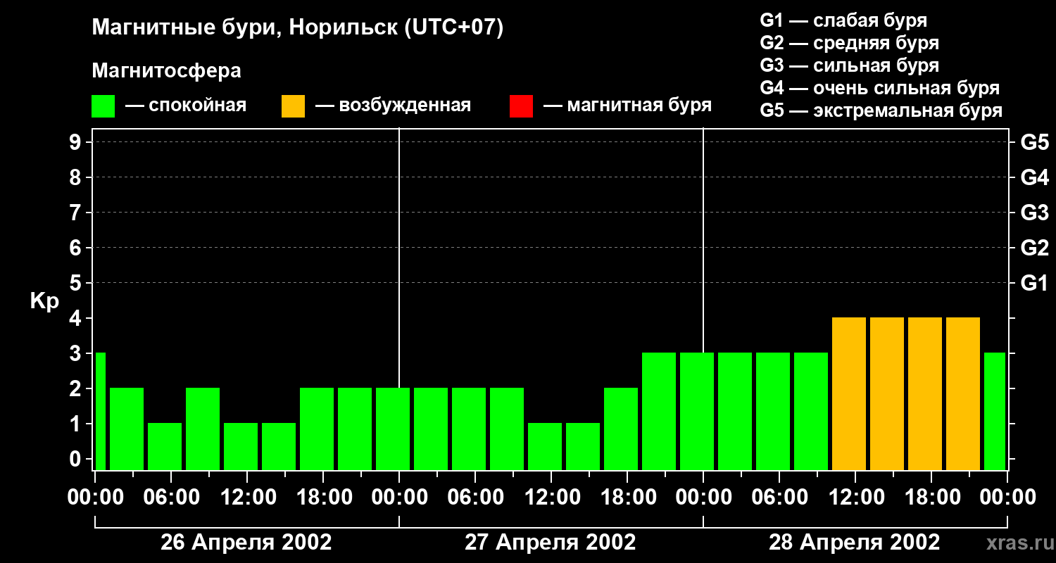 Магнитные бури в Норильске — 28 апреля 2002 года