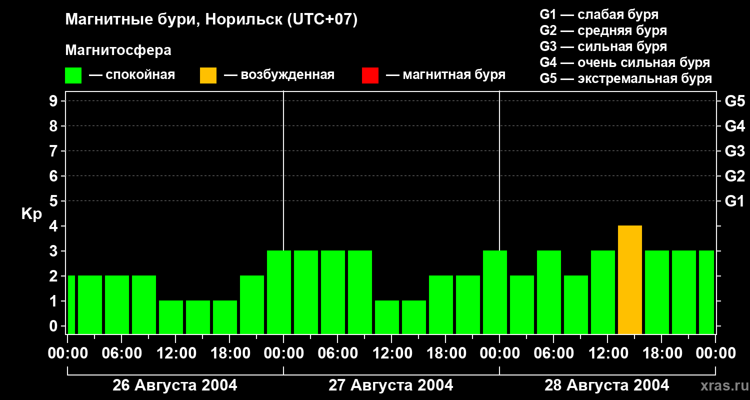 Магнитные бури в Норильске — 28 августа 2004 года