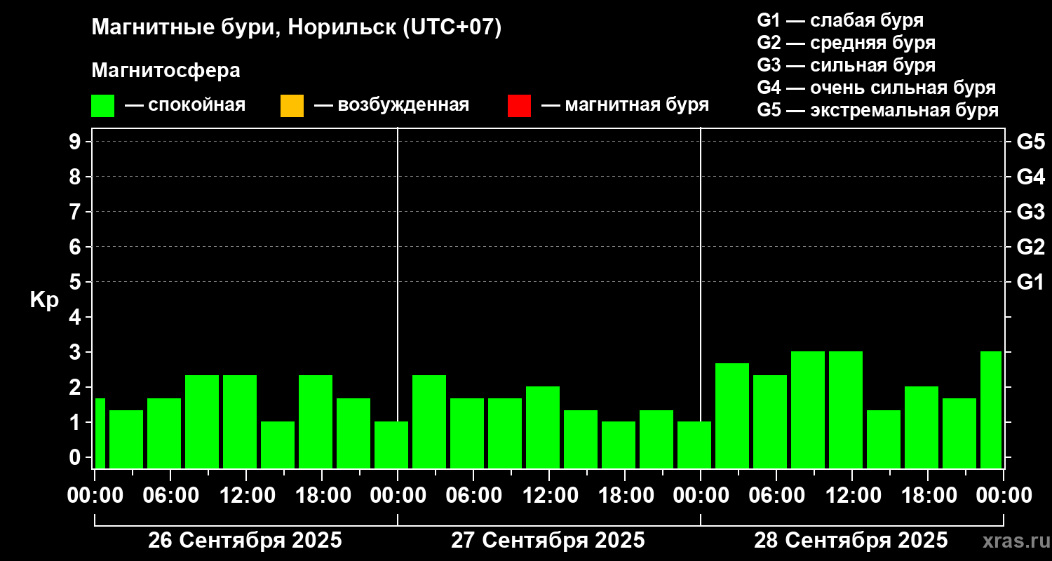 Магнитные бури в Норильске — 28 сентября 2025 года