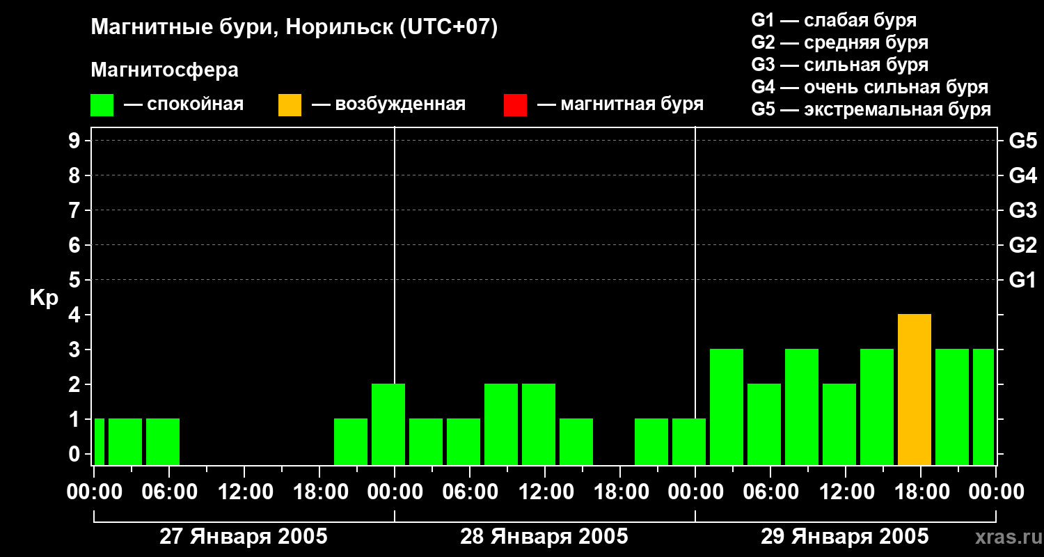 Магнитные бури в Норильске — 29 января 2005 года