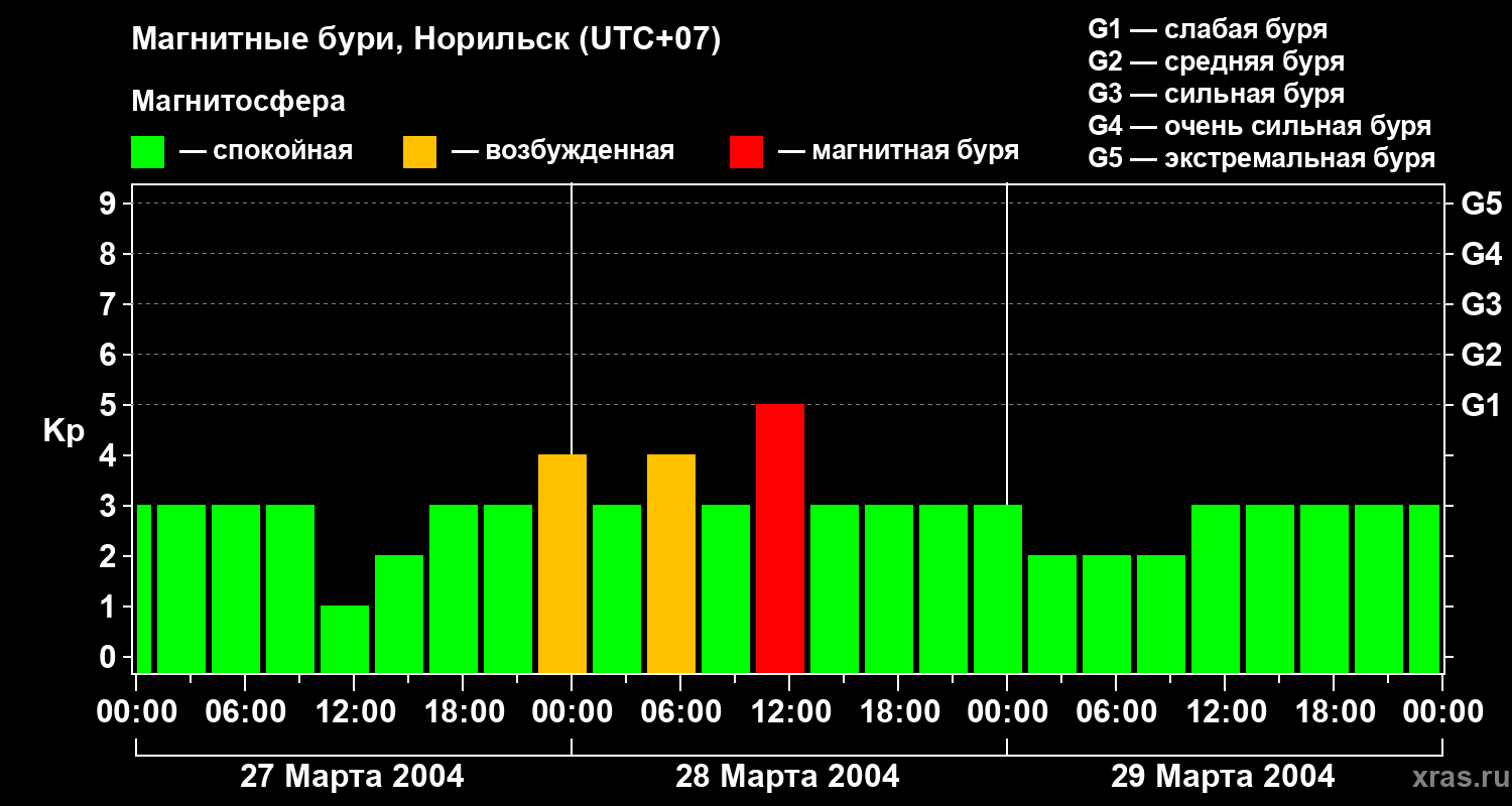 Магнитные бури в Норильске — 29 марта 2004 года