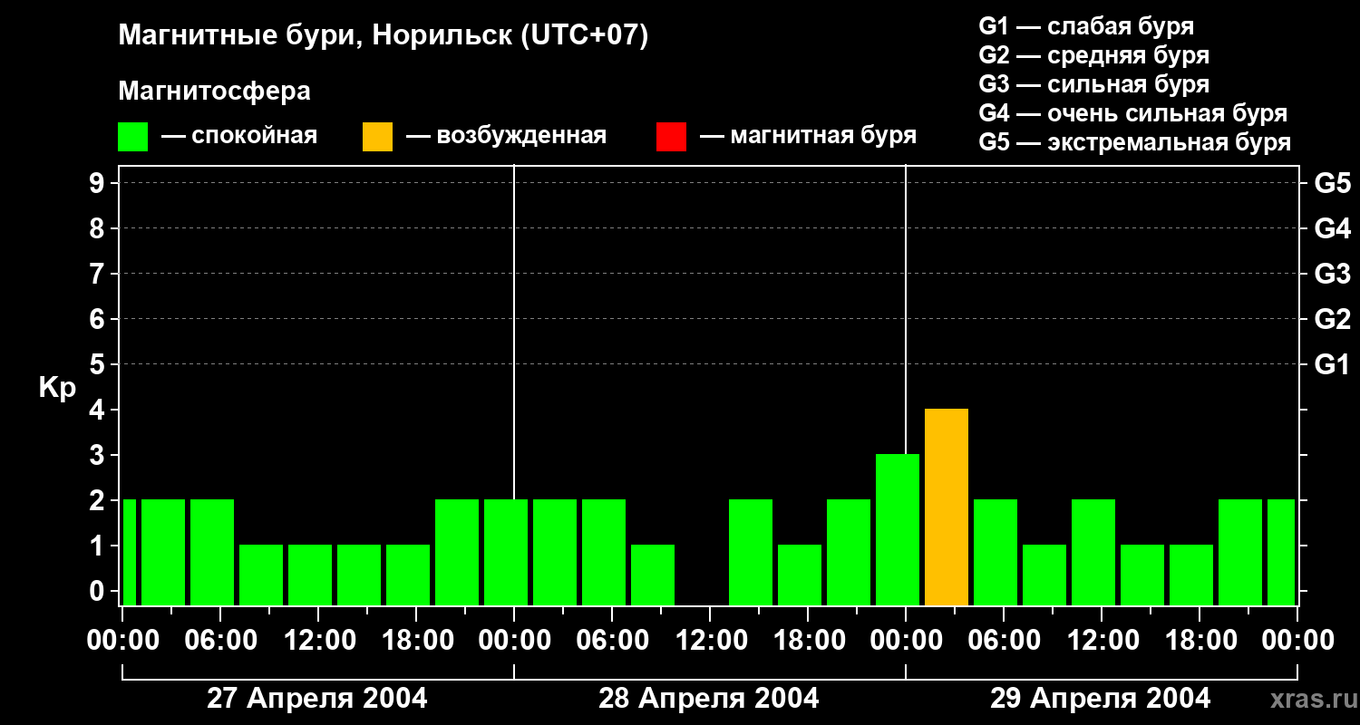 Магнитные бури в Норильске — 29 апреля 2004 года