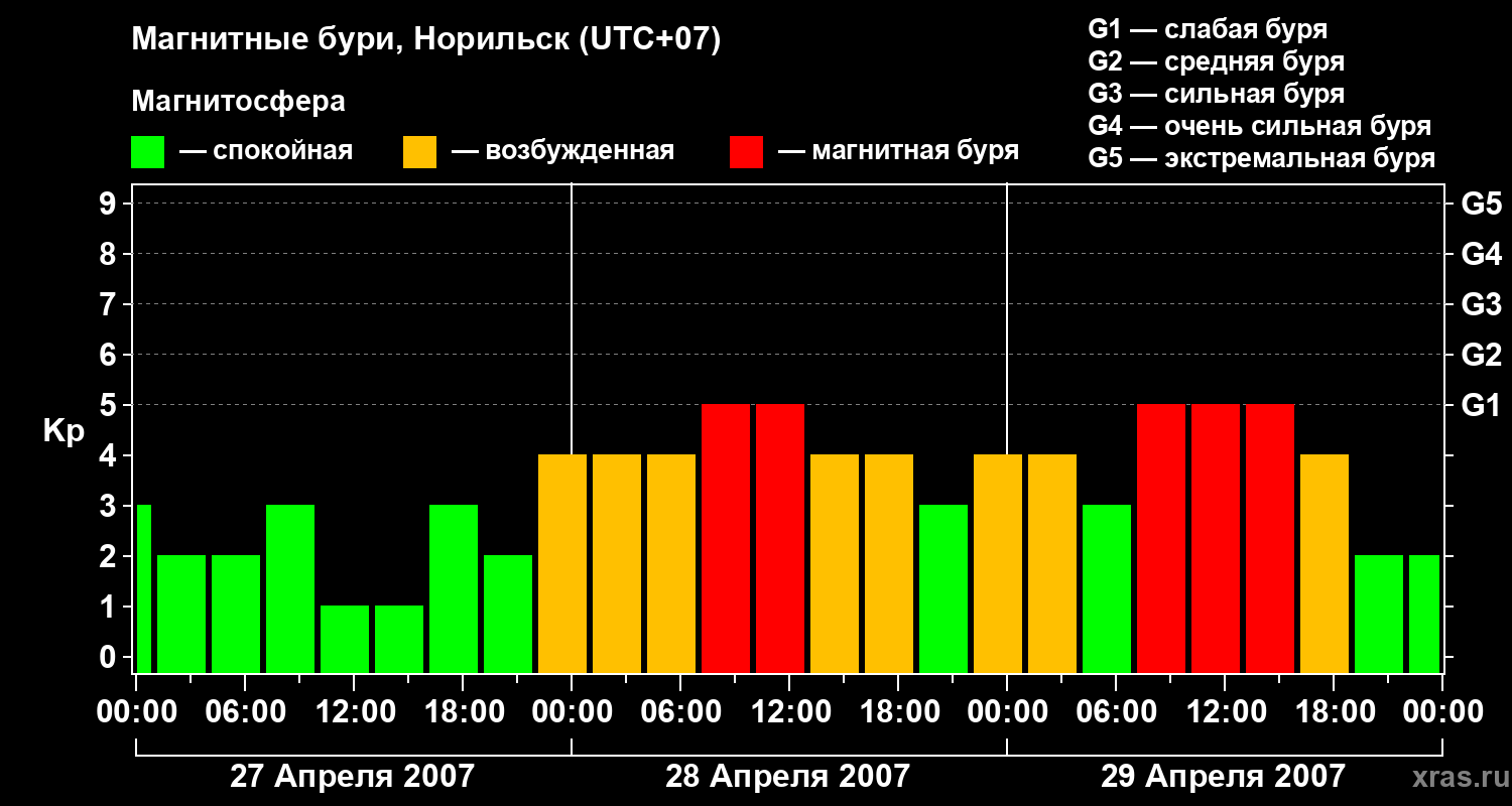 Магнитные бури в Норильске — 29 апреля 2007 года