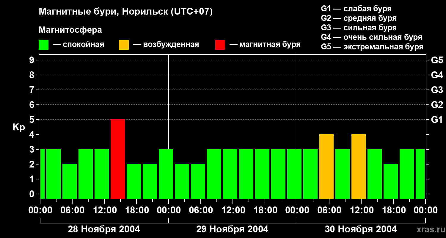 Магнитные бури в Норильске — 30 ноября 2004 года