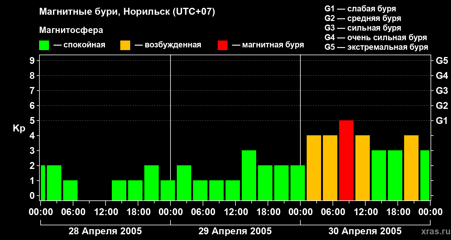 Магнитные бури в Норильске — 30 апреля 2005 года