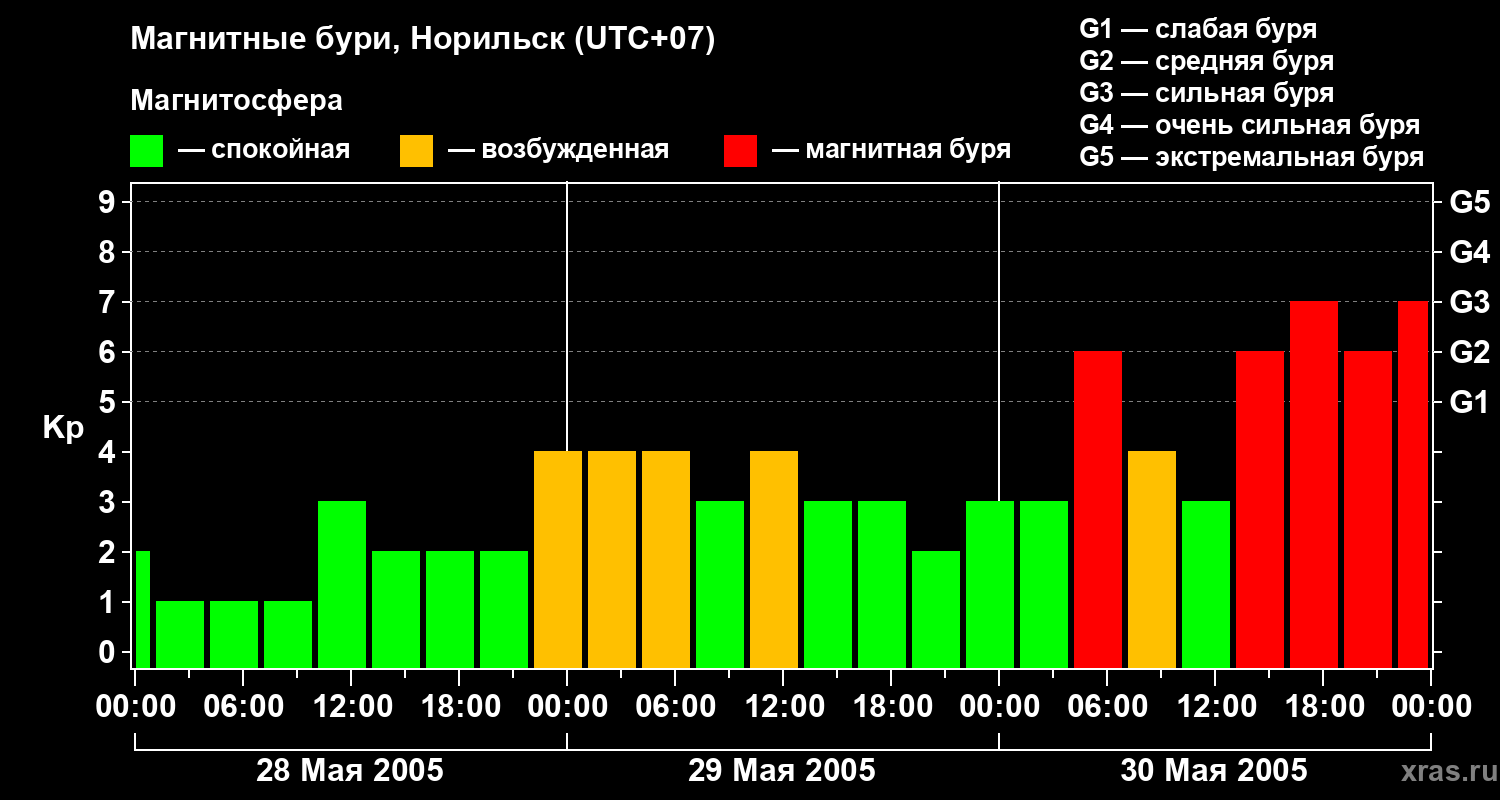 Магнитные бури в Норильске — 30 мая 2005 года