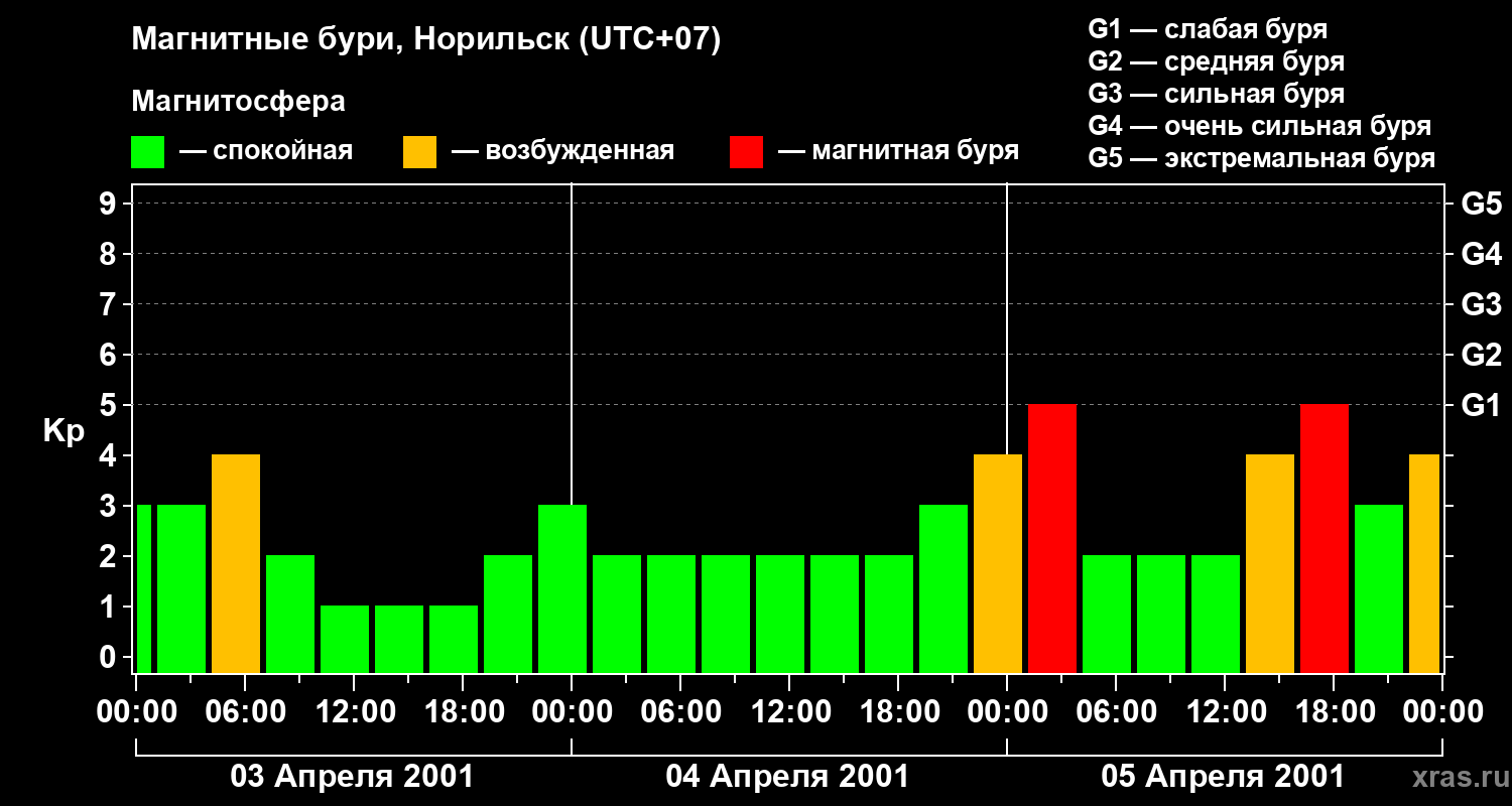 Магнитные бури в Норильске — 5 апреля 2001 года