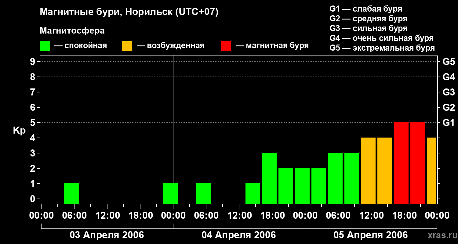 Магнитные бури в Норильске — 5 апреля 2006 года