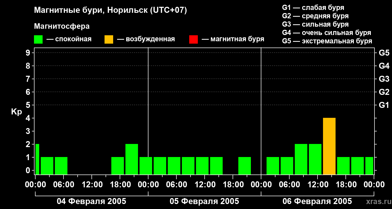 Магнитные бури в Норильске — 6 февраля 2005 года