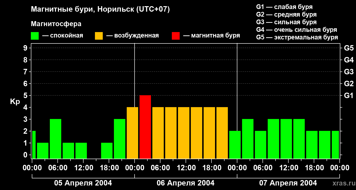 Магнитные бури в Норильске — 7 апреля 2004 года