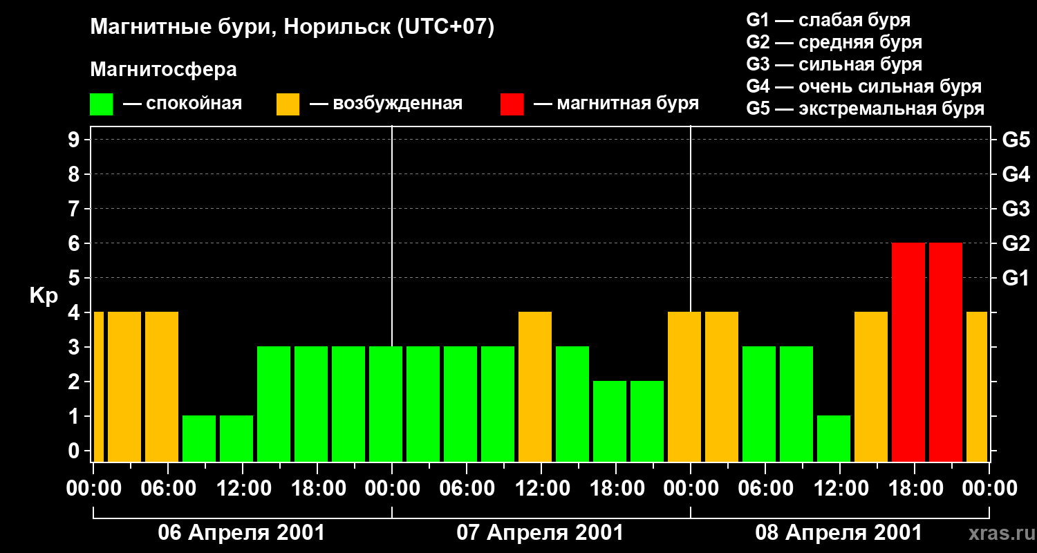 Магнитные бури в Норильске — 8 апреля 2001 года