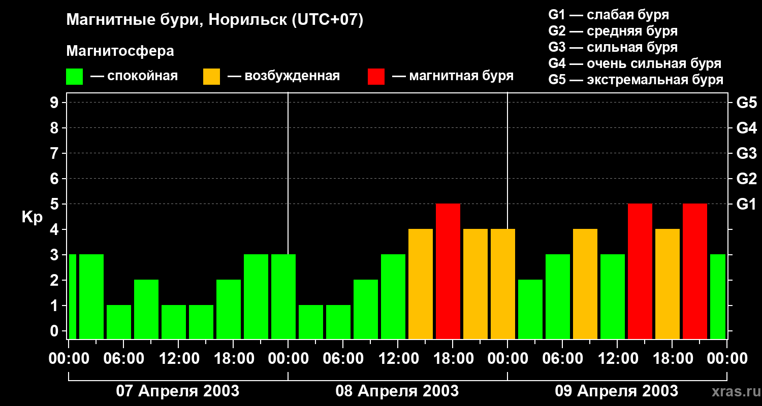 Магнитные бури в Норильске — 9 апреля 2003 года