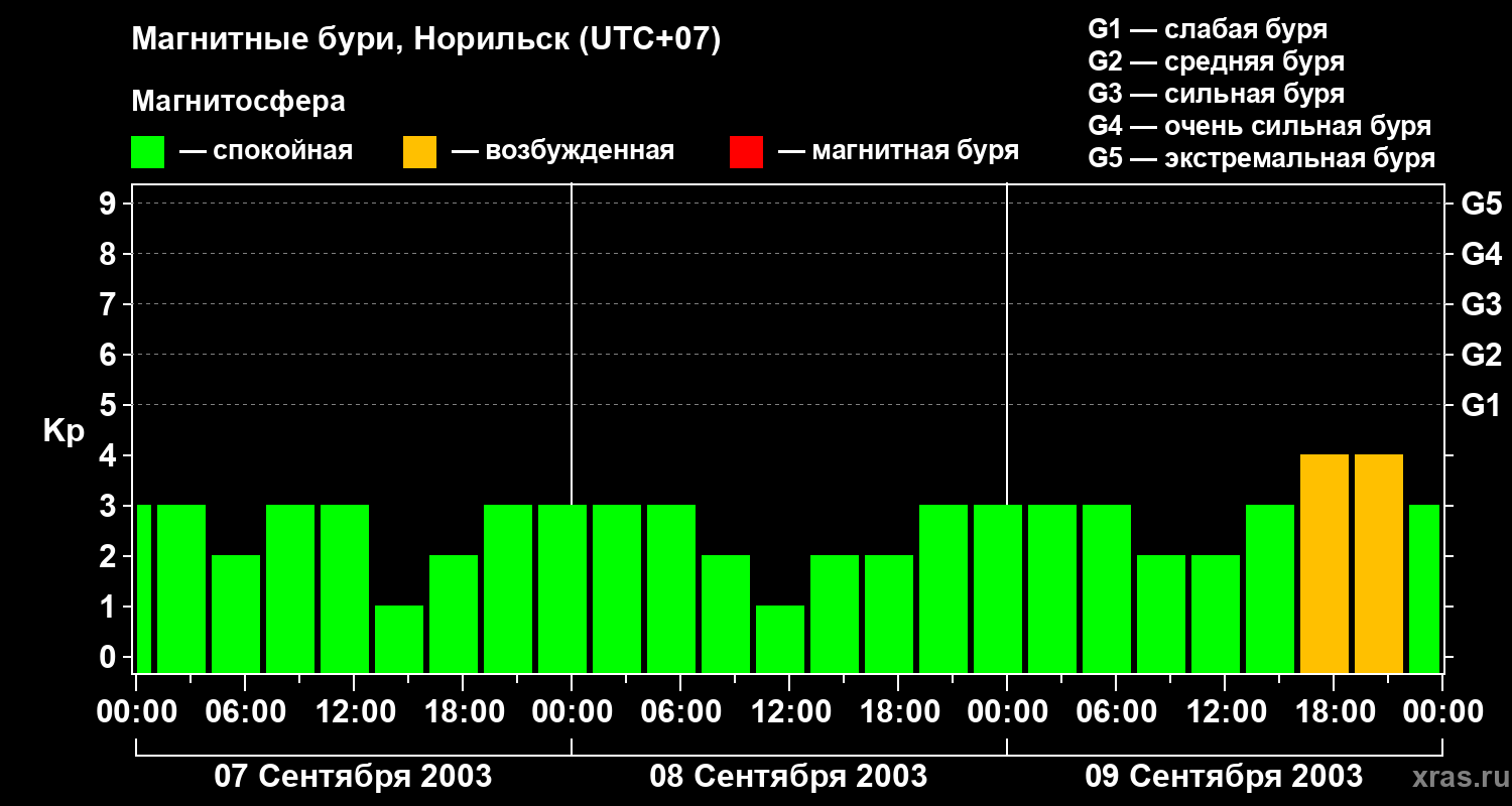 Магнитные бури в Норильске — 9 сентября 2003 года