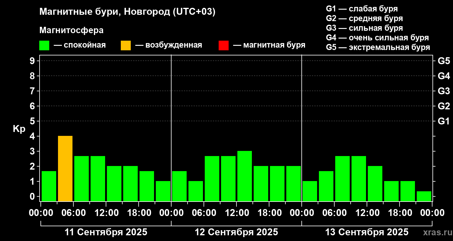 Магнитные бури в Новгороде 13 сентября 2025 года