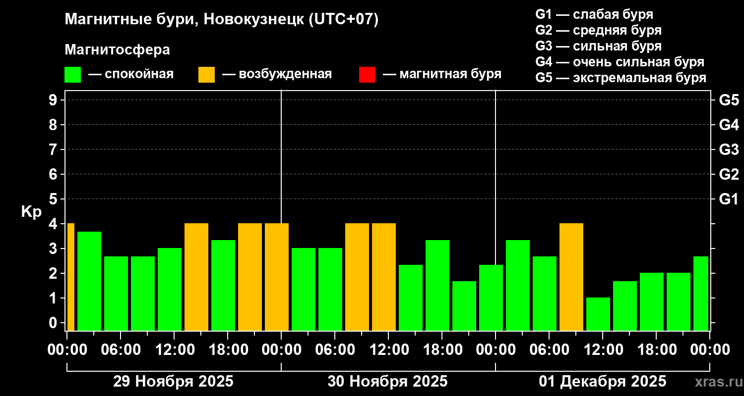 Магнитные бури в Новокузнецке — 1 декабря 2025 года