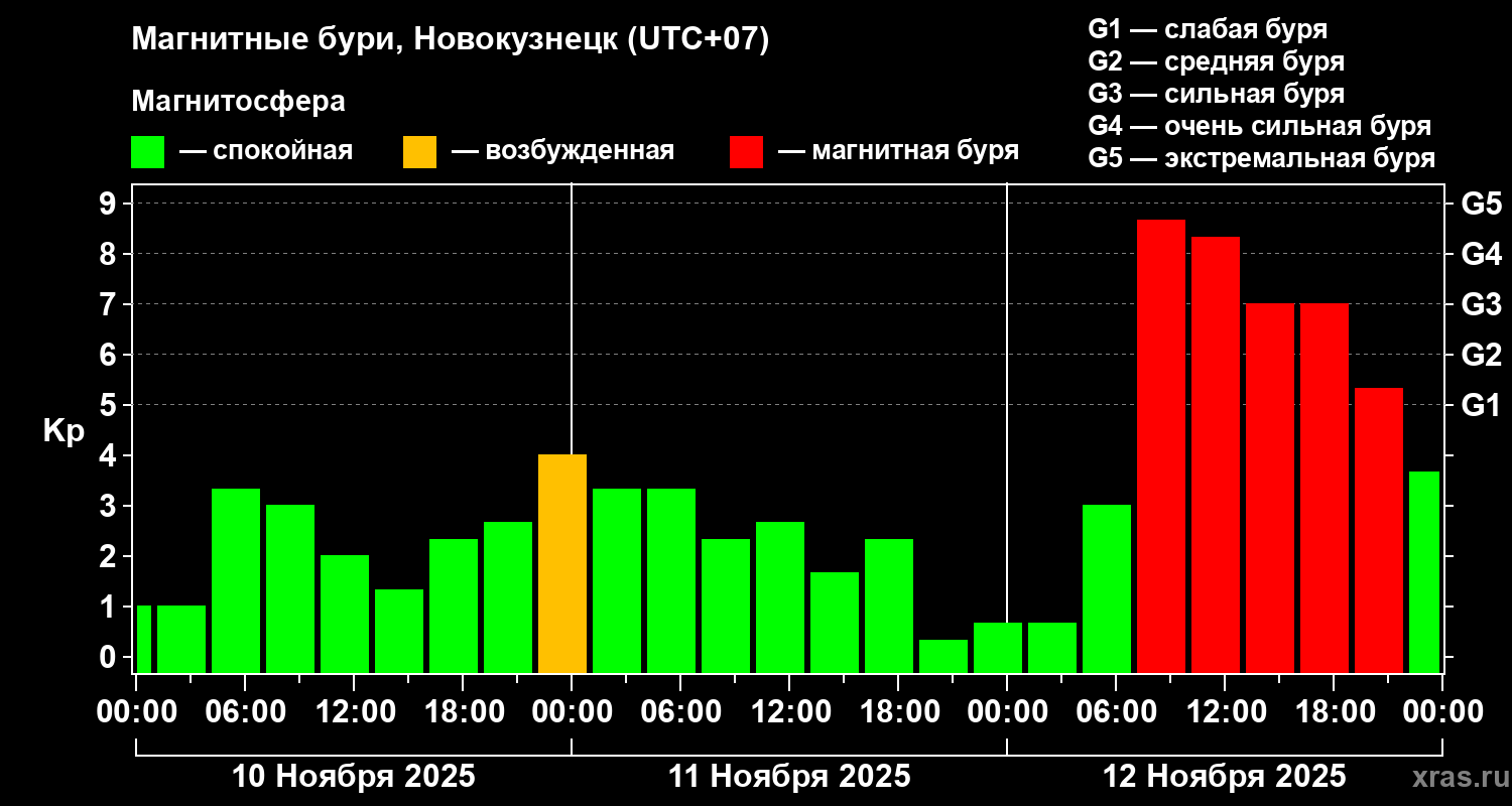 Магнитные бури в Новокузнецке 12 ноября 2025 года