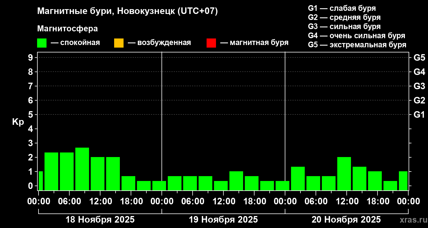 Магнитные бури в Новокузнецке 20 ноября 2025 года