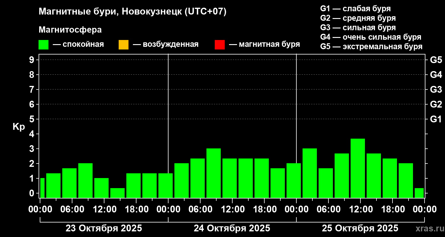 Магнитные бури в Новокузнецке — 25 октября 2025 года